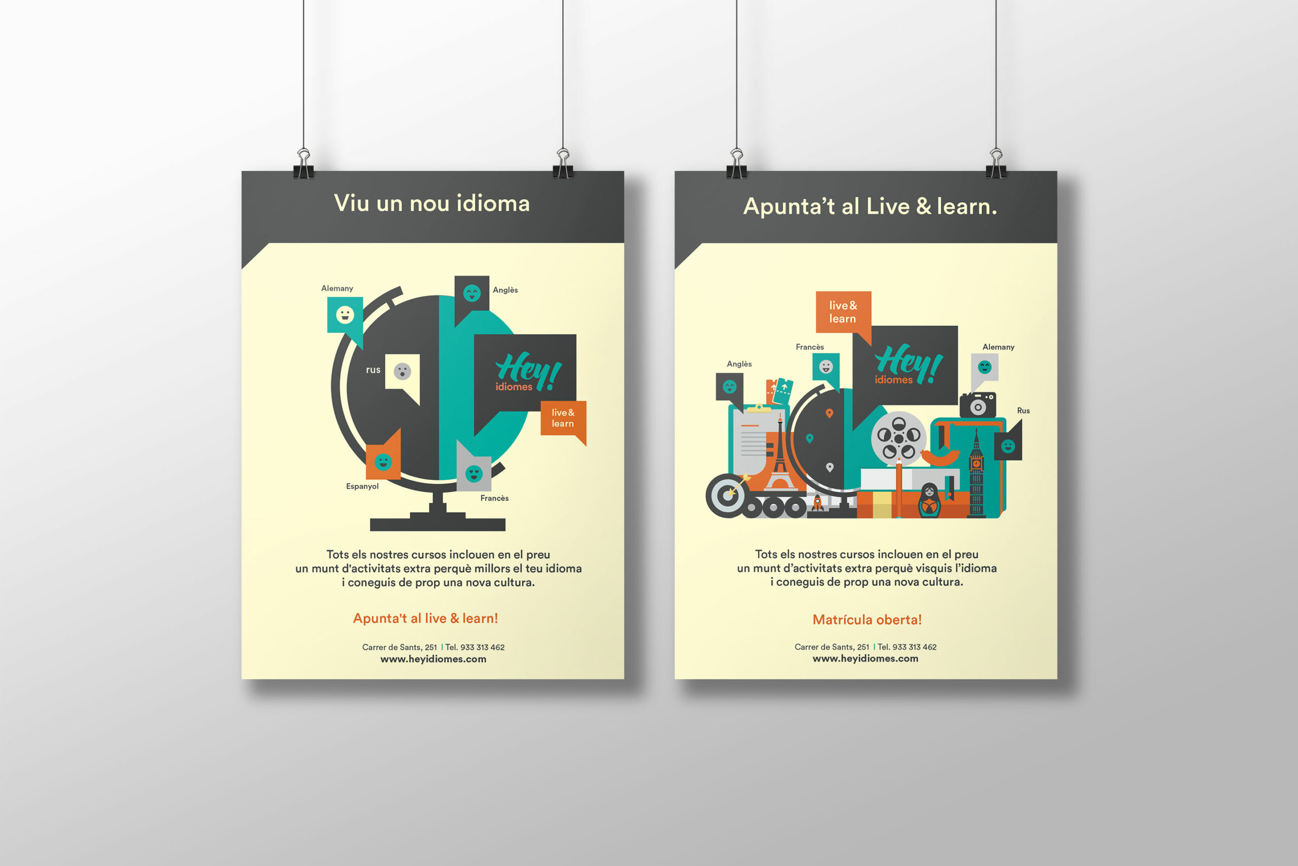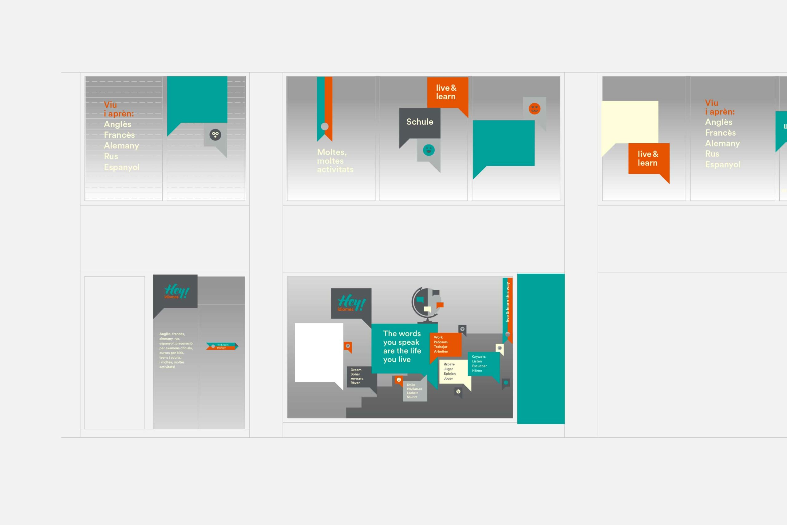 Una marca actual debe ser más que un logotipo: tiene que respirar, conectar y expresar un universo propio. Hey! Idiomes me dio la oportunidad de desarrollar el proyecto desde cero —desde el naming hasta la estrategia de marca, la identidad visual y la comunicación.