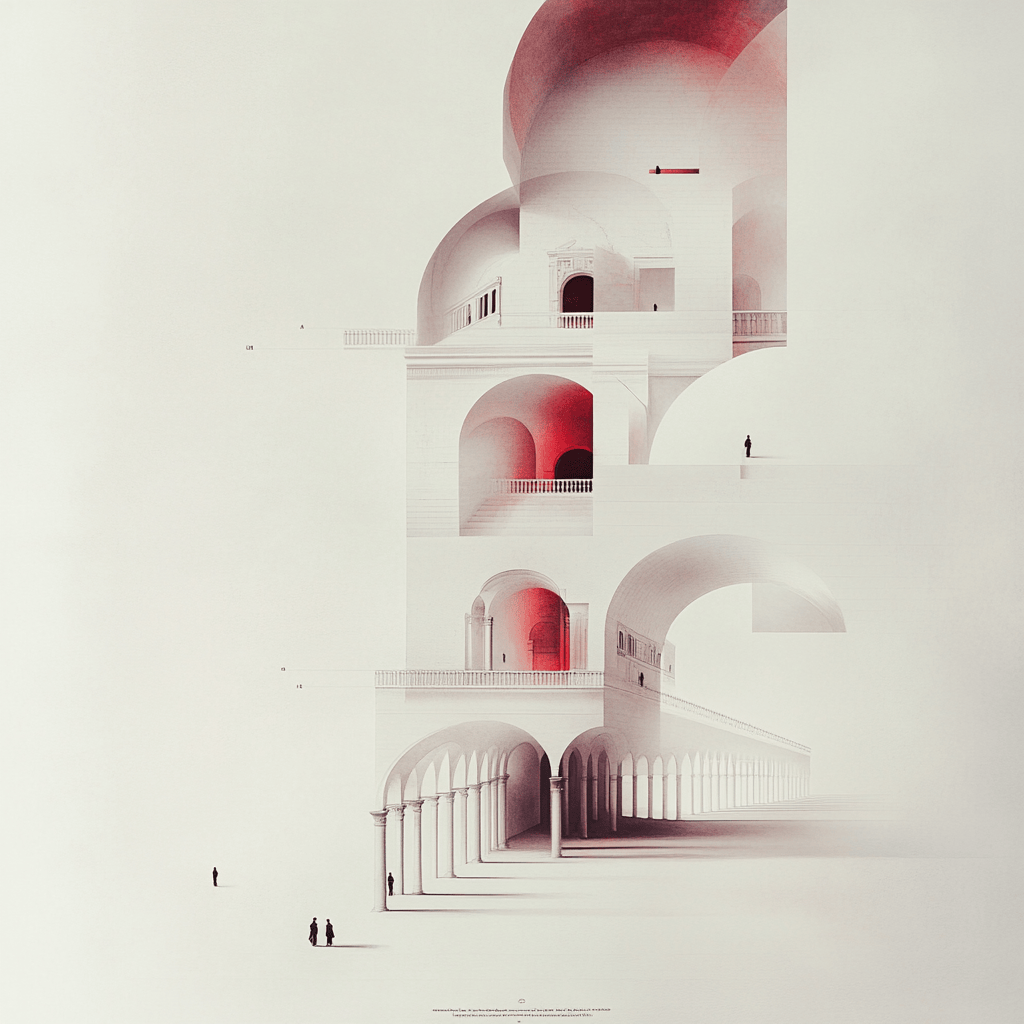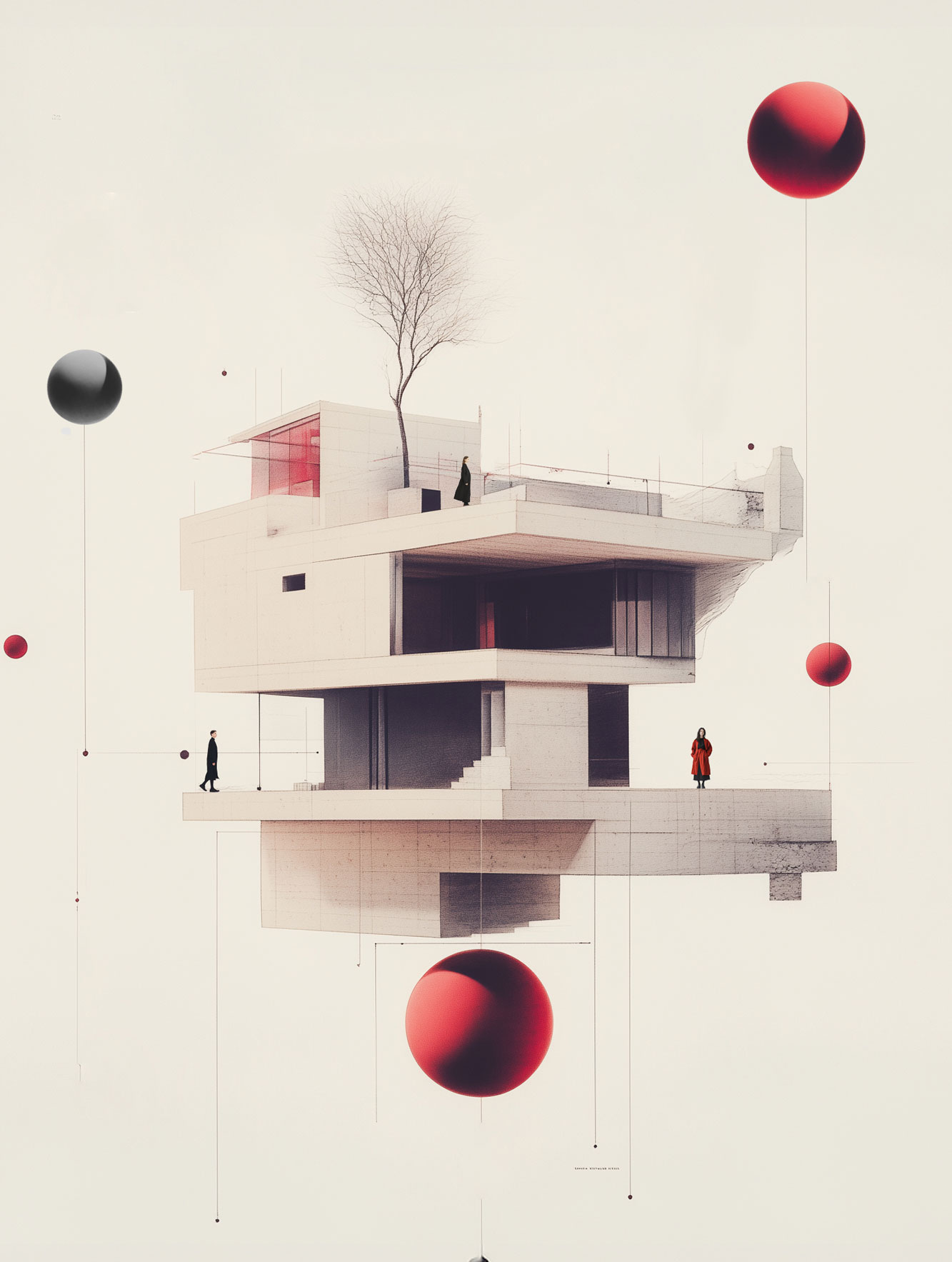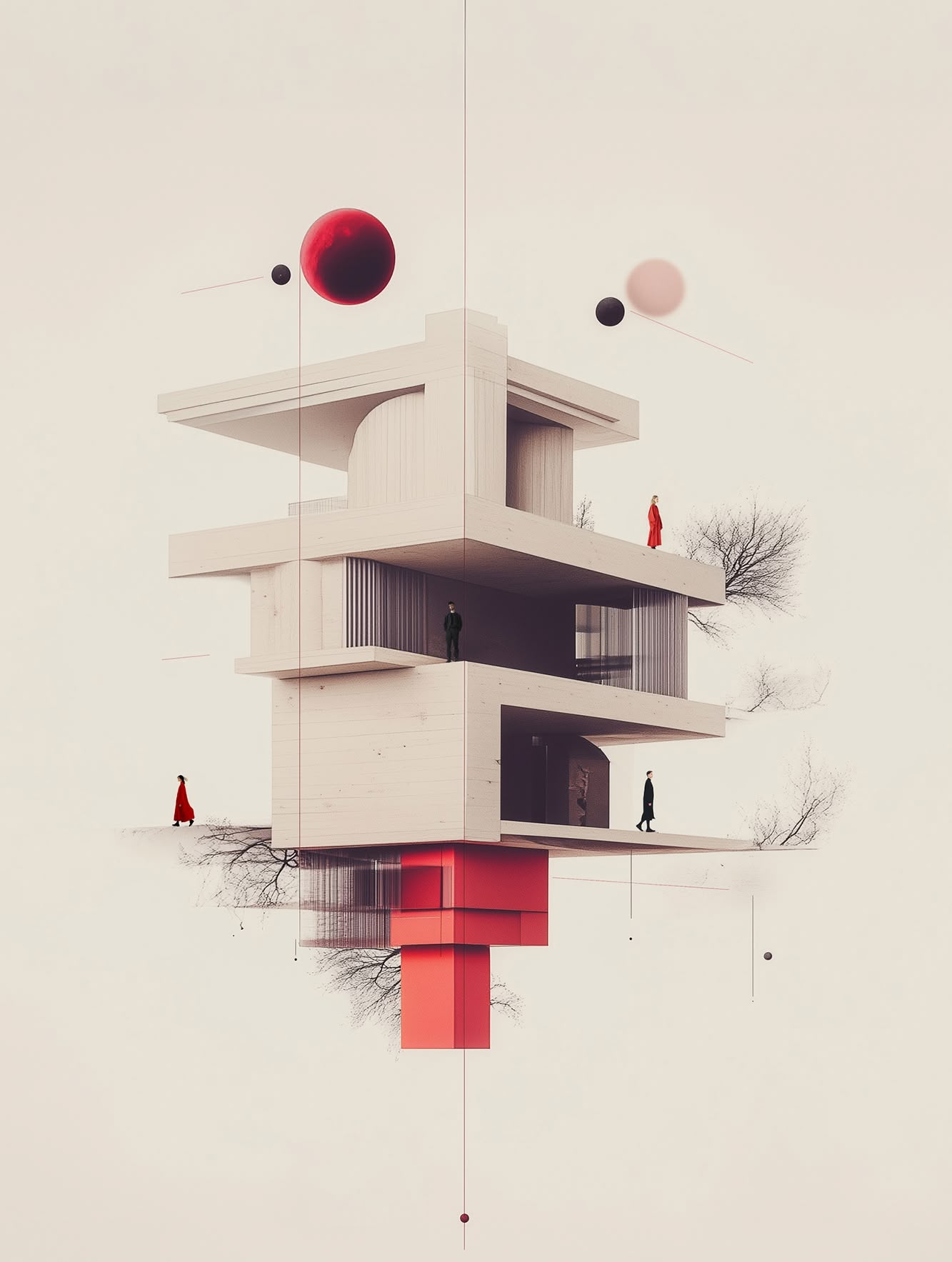 Exploración sobre la relación entre estructura, paisaje y ficción generada con IA.