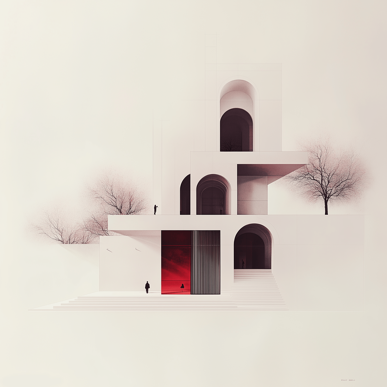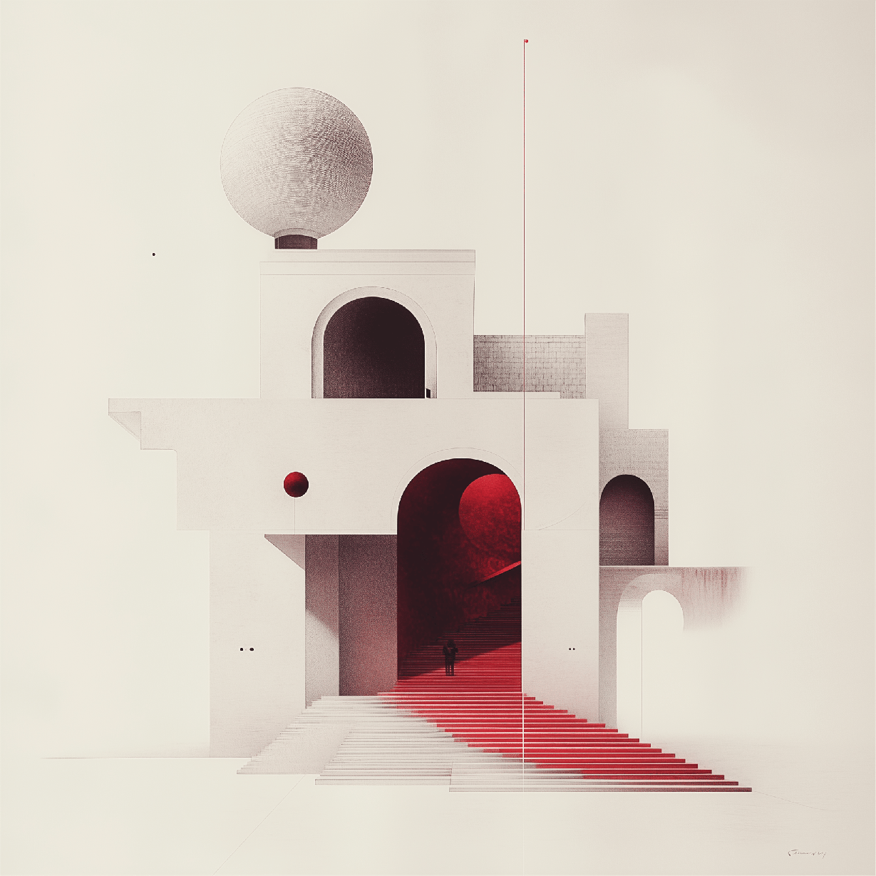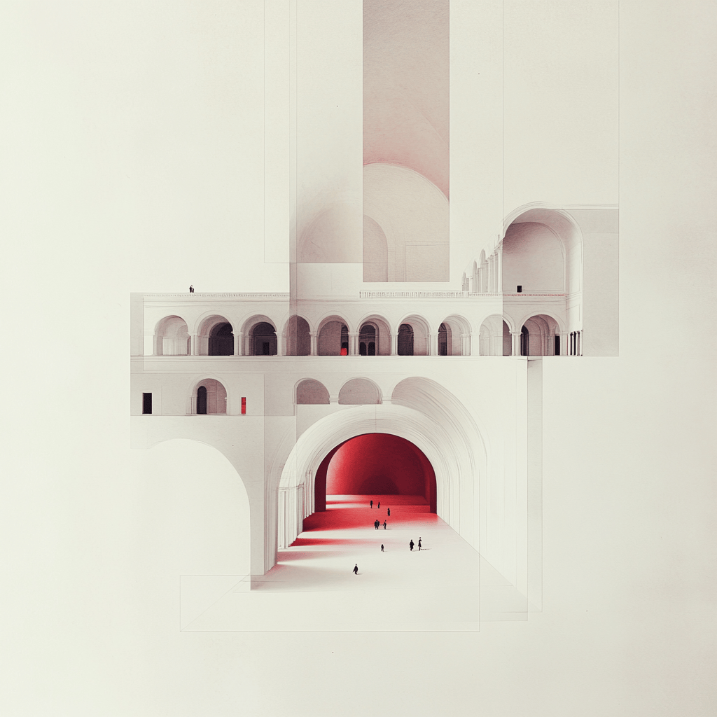 Exploración sobre la relación entre estructura, paisaje y ficción generada con IA.