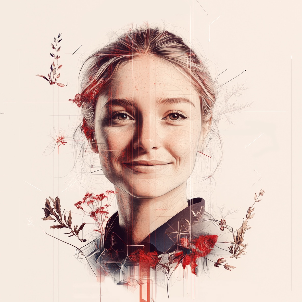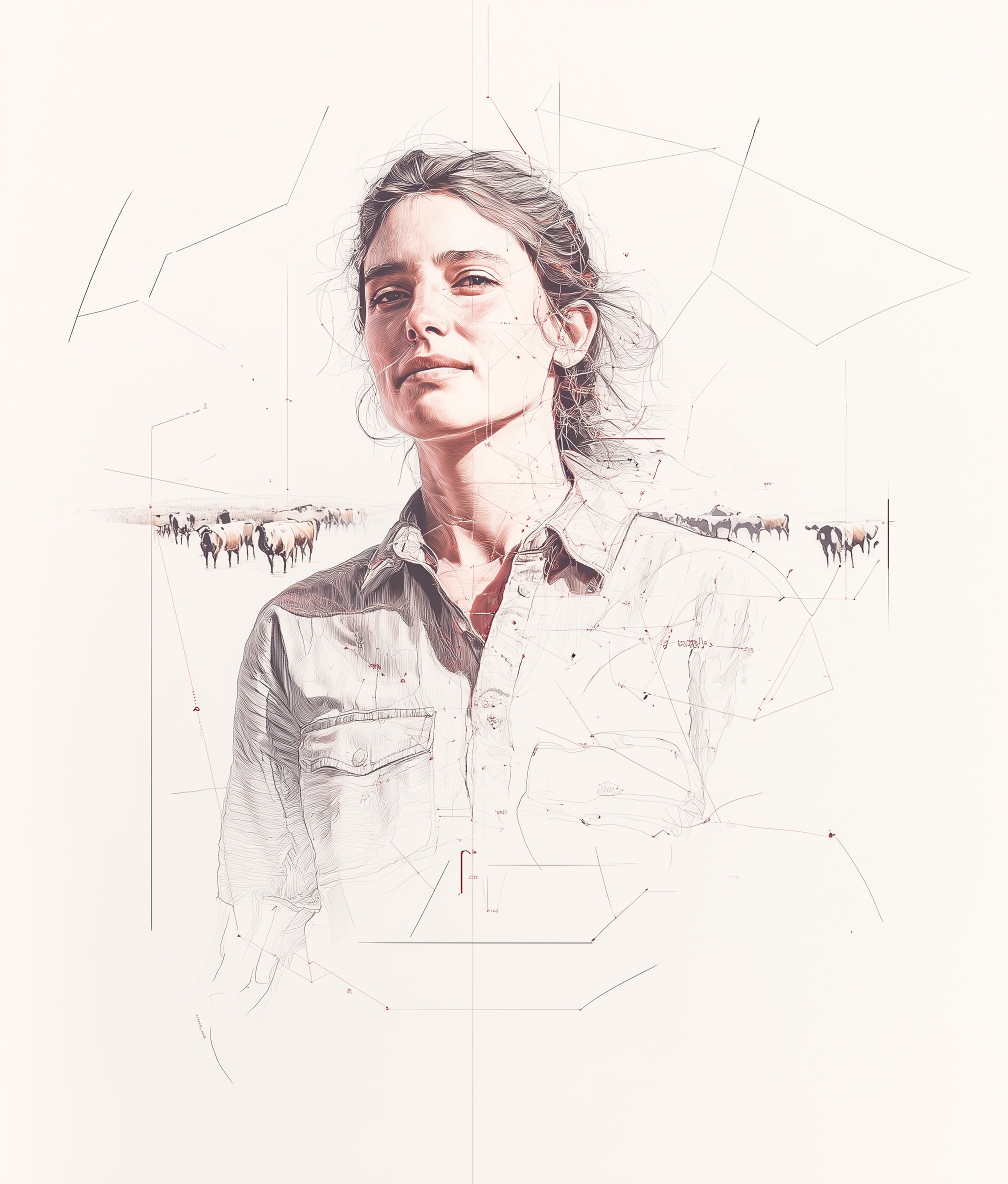 Serie de imágenes creadas con IA (personas, fruta, topografías, horizontes) sobre paletas suaves y materiales cálidos. Un sistema que evita el stock genérico, refuerza autenticidad y permite escalar a soportes editoriales y digitales.