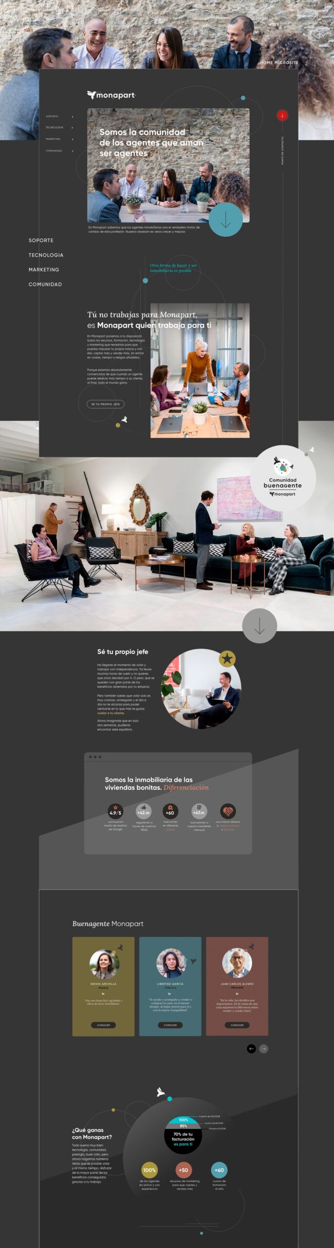 El microsite Buenagente forma parte del ecosistema digital de Monapart y está dirigido a un usuario muy concreto: los agentes inmobiliarios. Un espacio diseñado para explicar, atraer y acompañar a quienes comparten la visión y la manera de hacer de Monapart.