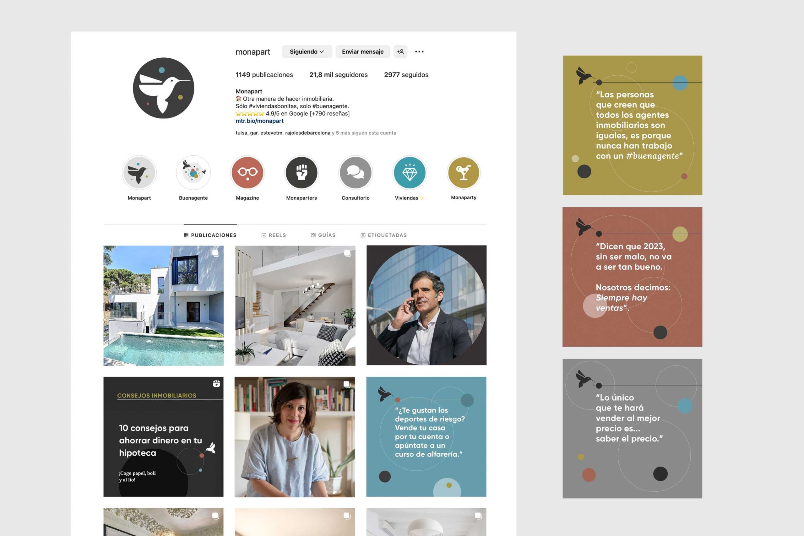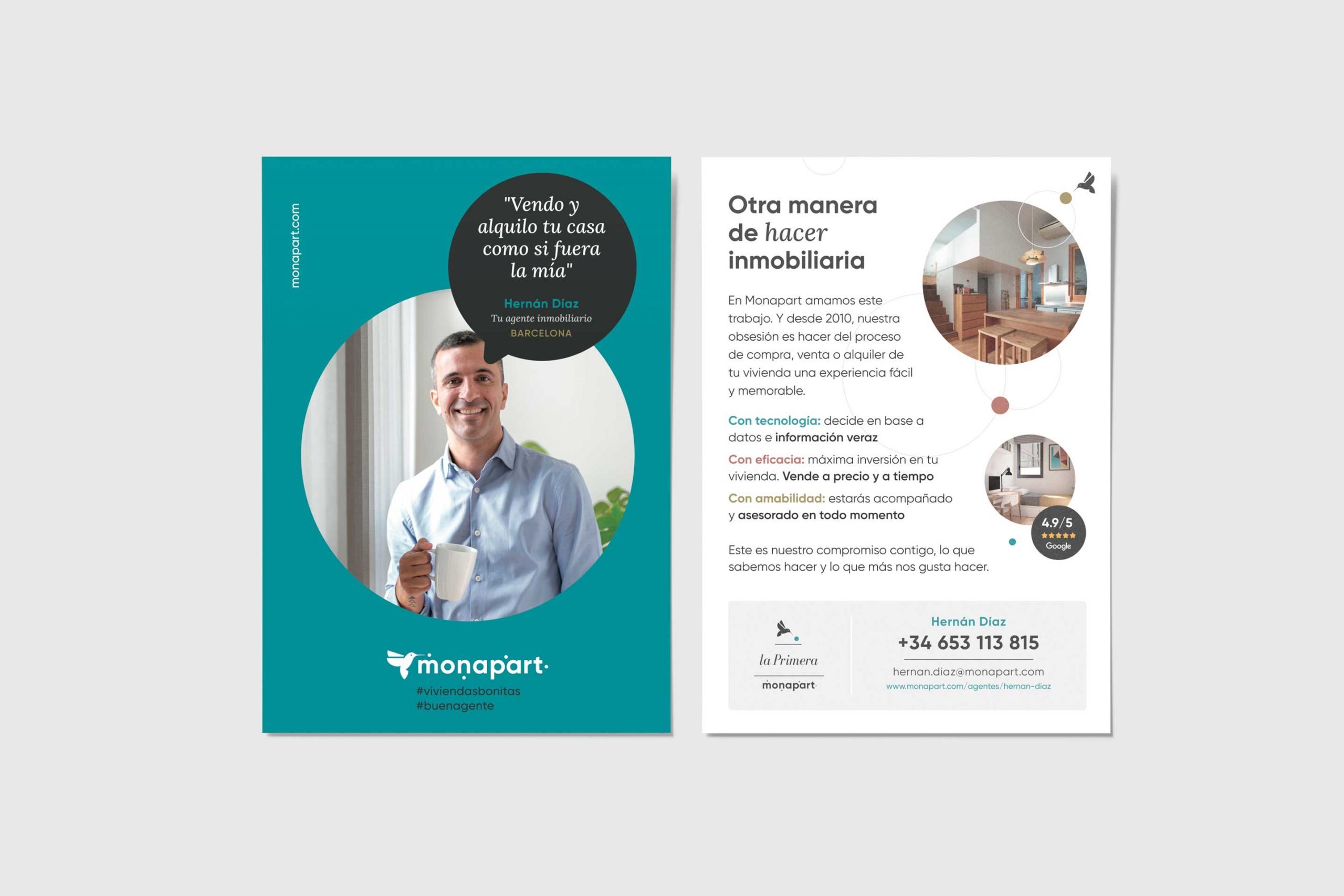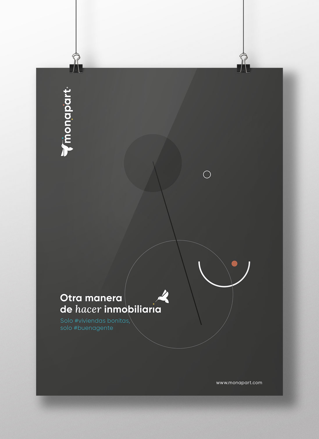 El resultado es una marca con una voz propia y cercana, donde el diseño funciona como herramienta de claridad y confianza. Una identidad que crece en cada soporte —digital o físico— y refuerza el propósito de Monapart: transformar el sector inmobiliario desde dentro, con empatía, innovación y sentido.