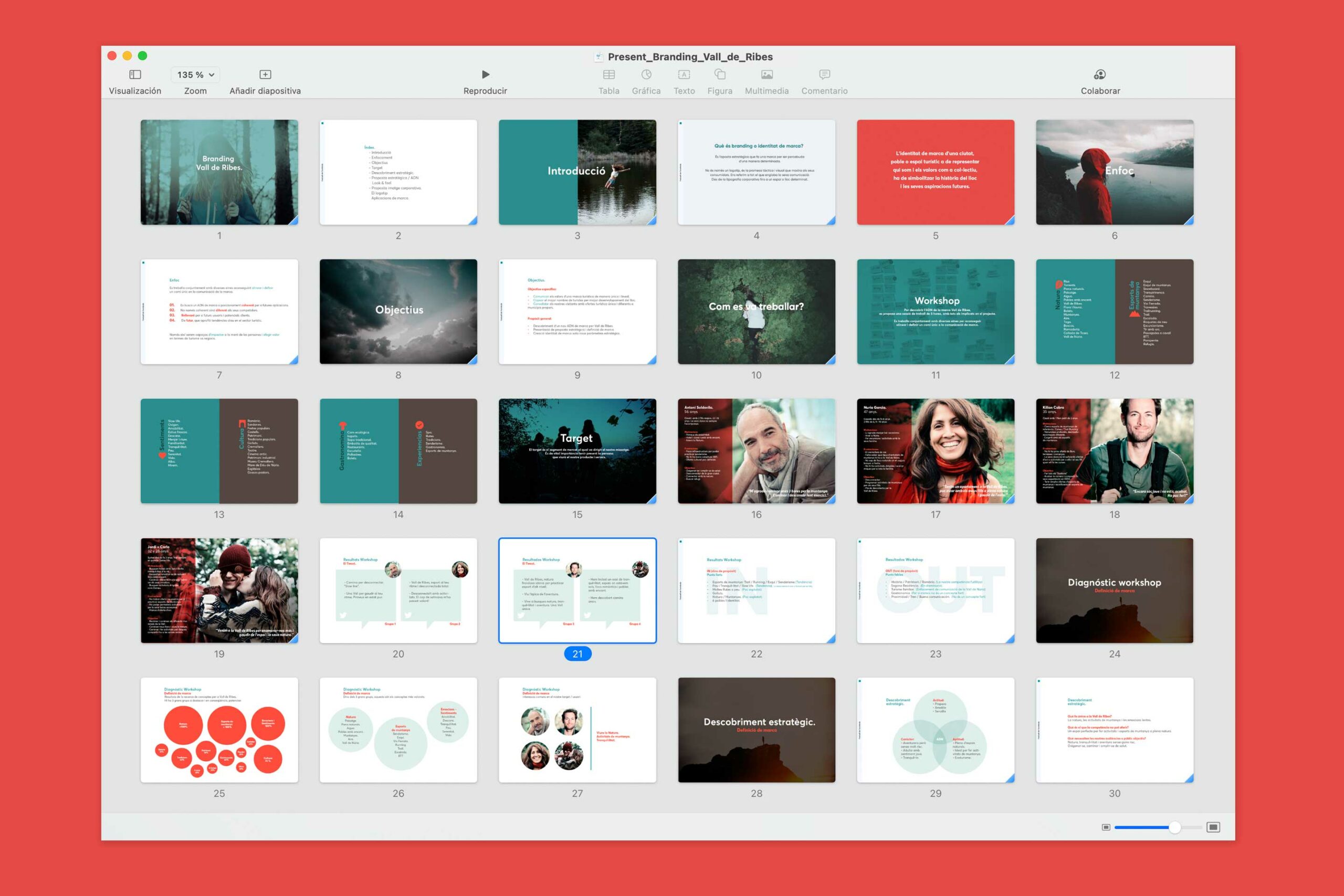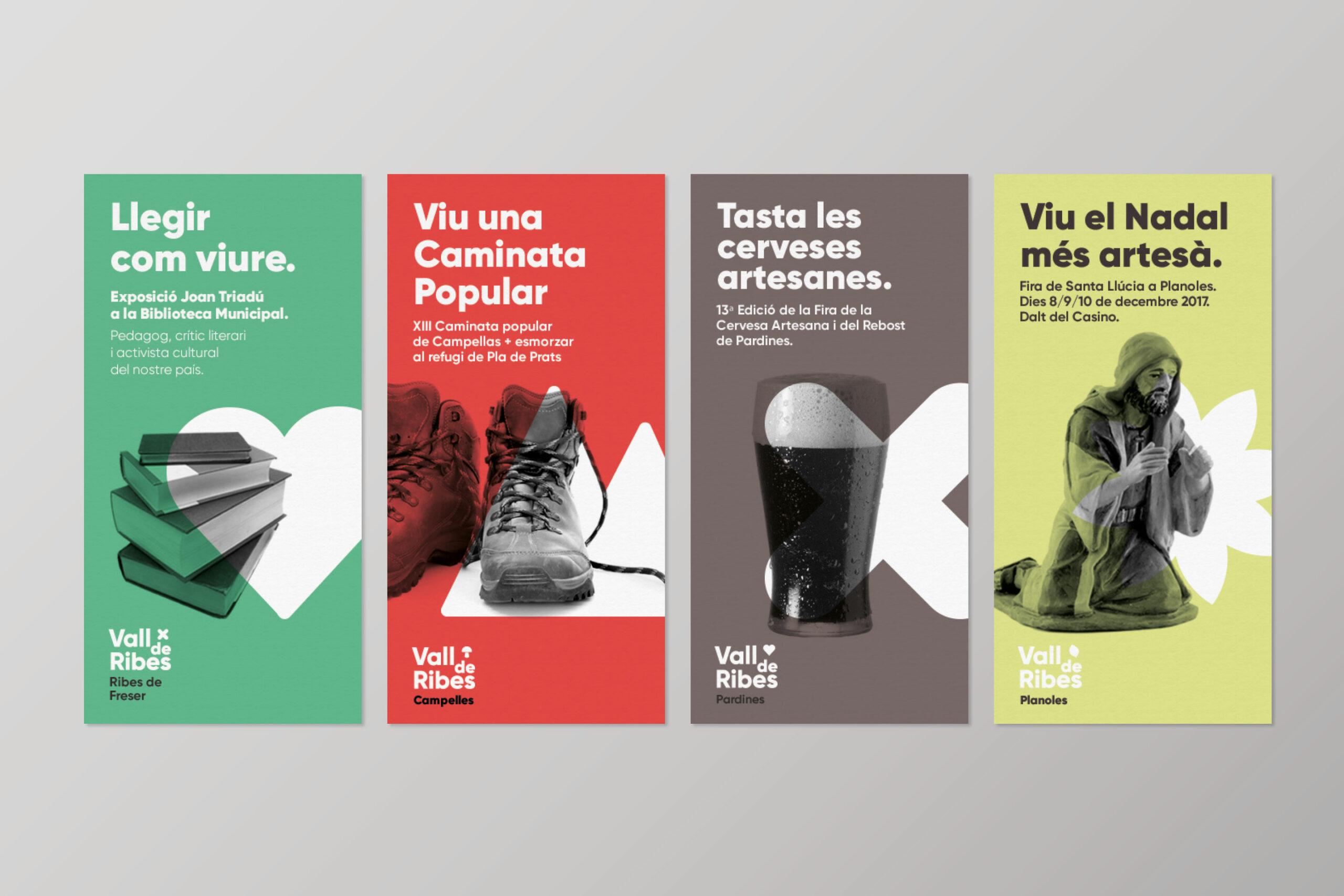 Proyecto de consultoría y dirección de arte para la creación de la marca territorial Vall de Ribes, en el Pirineo catalán. El reto fue definir un posicionamiento común para seis municipios, integrando administraciones públicas y sector privado en un proceso colaborativo de co-creación.